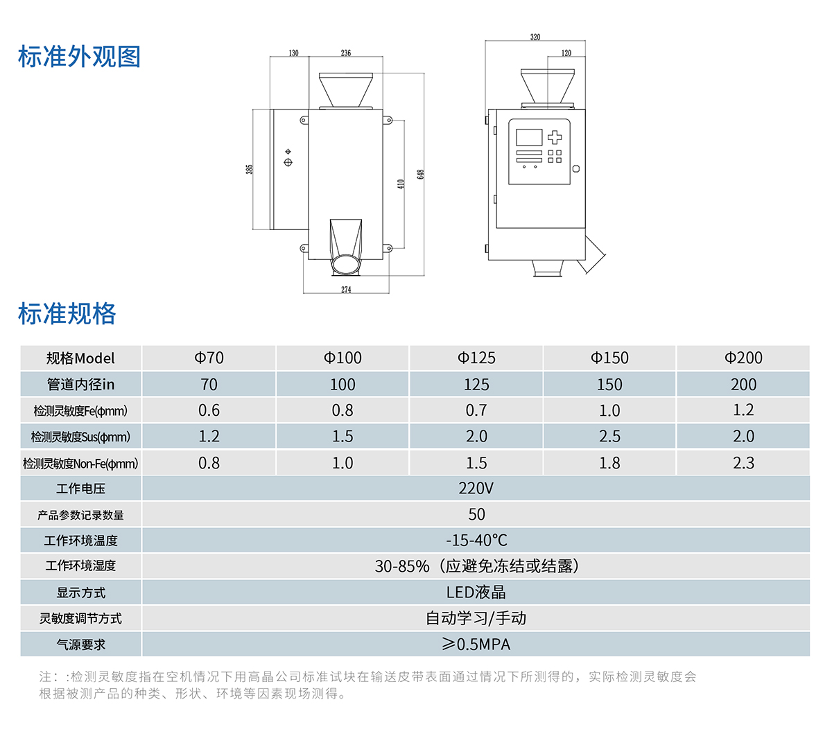 适用于各种粉末状、颗粒状、散料等金属异物检测。